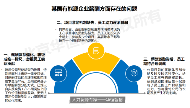 华恒智信项目组专家老师抵达项目现场后,对该公司开展了多次调研与访谈工作,通过对调研结果及数据的分析,项目组发现目前该能源公司在薪酬体系方面主要有以下问题: